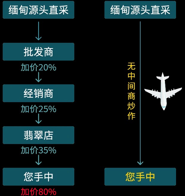 我们的货源都是从缅甸商手上直接购买的原料,自己家也有设计、经验师傅,从而成功做到没有中间商赚差价。